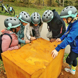 The tour continues perfectly well, we are right on time because at 1pm we have an appointment at the Brasserie Schmëdd to taste some good traditional dishes. It is midday when we arrive in the bike park in Schifflange. Last destination before we start the return to Ellergronn and join the restaurant.